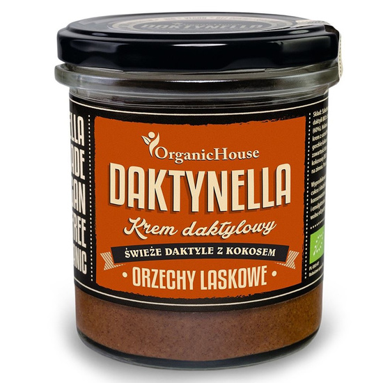 Daktynella OrganicHouse to niskokaloryczny krem na bazie świeżych ekologicznych daktyli medjool, kokosa i ORZECHÓW LASKOWYCH - prawdziwa czysta etykieta. Kluczem doskonałego smaku są najwyższej jakości składniki. Daktynella świetnie smakuje…prosto ze słoika, a także z naleśnikami, pieczywem, jogurtem z płatkami, orzechami, ziarnami i owocami. Polecamy również na gorąco ze świeżymi truskawkami i malinami.