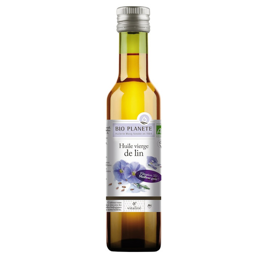 Ekologiczny olej lniany Bio Planete charakteryzuje się szczególnie wysoką zawartością wielonienasyconego kwasu alfa-linolenowego (ALA) z grupy kwasów tłuszczowych omega-3, wynoszącą 47 g na 100 ml. Ten niezbędny kwas tłuszczowy przyjmowany w ilości 2 g dziennie (co odpowiada 5 ml / 1 łyżeczce oleju lnianego) przyczynia się do utrzymania prawidłowego poziomu cholesterolu we krwi. Olej lniany jest zatem jednym z olejów, które są czymś więcej niż tylko produktem spożywczym.