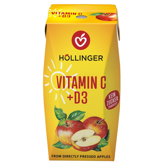NEKTAR JABŁKOWY Z WITAMINĄ C I D BEZ DODATKU CUKRÓW 200 ml - HOLLINGER