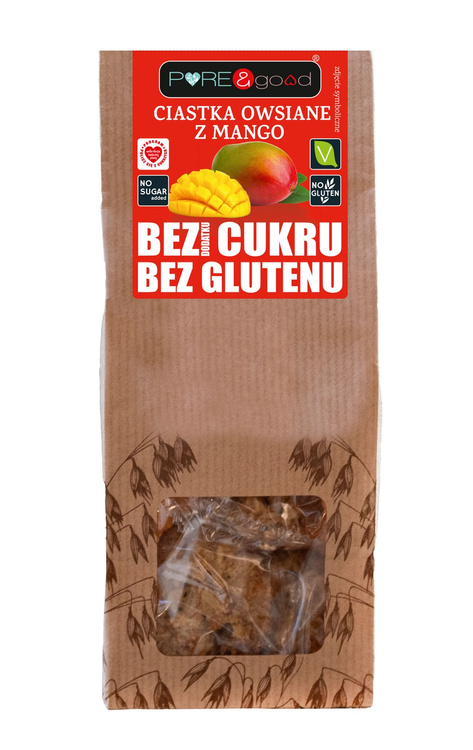 CIASTKA OWSIANE Z MANGO BEZ DODATKU CUKRÓW BEZGLUTENOWE 150 g - PURE&GOOD